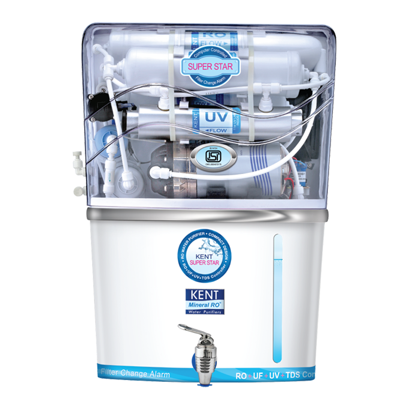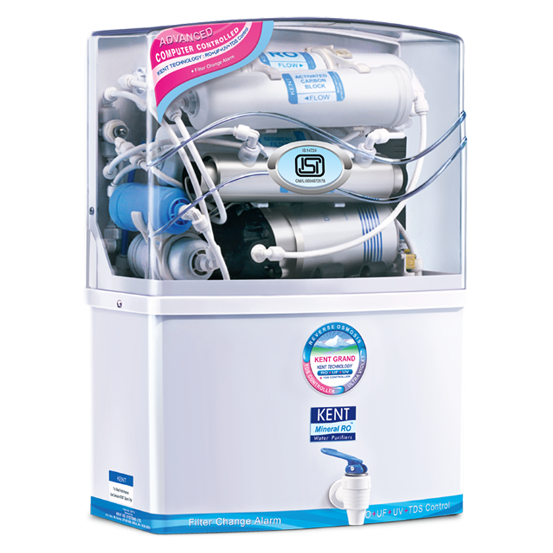 KENT Grand is all new, state of the art RO Water Purifier that utilises multiple purification process of RO+UF+TDS Control to make water pure and healthy. It is equipped with Mineral ROTM Technology that retains essential natural minerals in the purified water. Also, it comes with UV LED light in its storage tank that keeps purified water bacteria free and pure. Best suited for Indian homes and offices, this purifier is ideal for purification of brackish/tap water/municipal corporation water supply.